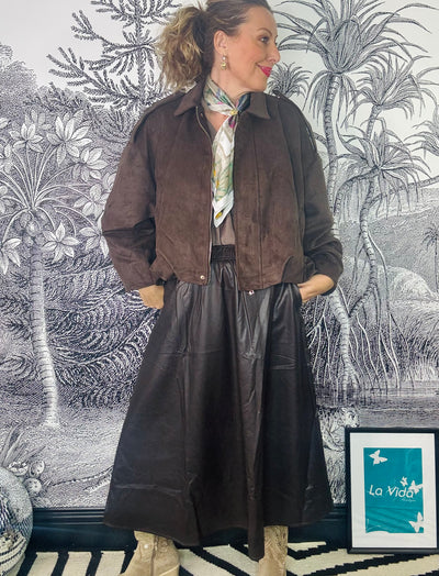 Juliet Vegan Leather Midi Skirt in Coffee Brown