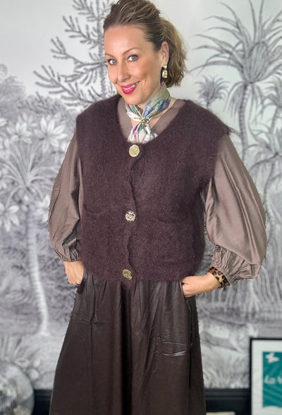 Juliet Vegan Leather Vest Top in Coffee Brown