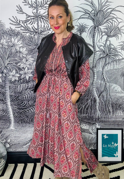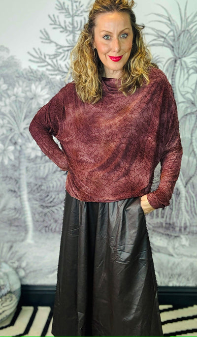 Zenia Zebra Flocked Mesh Top in Berry Rose