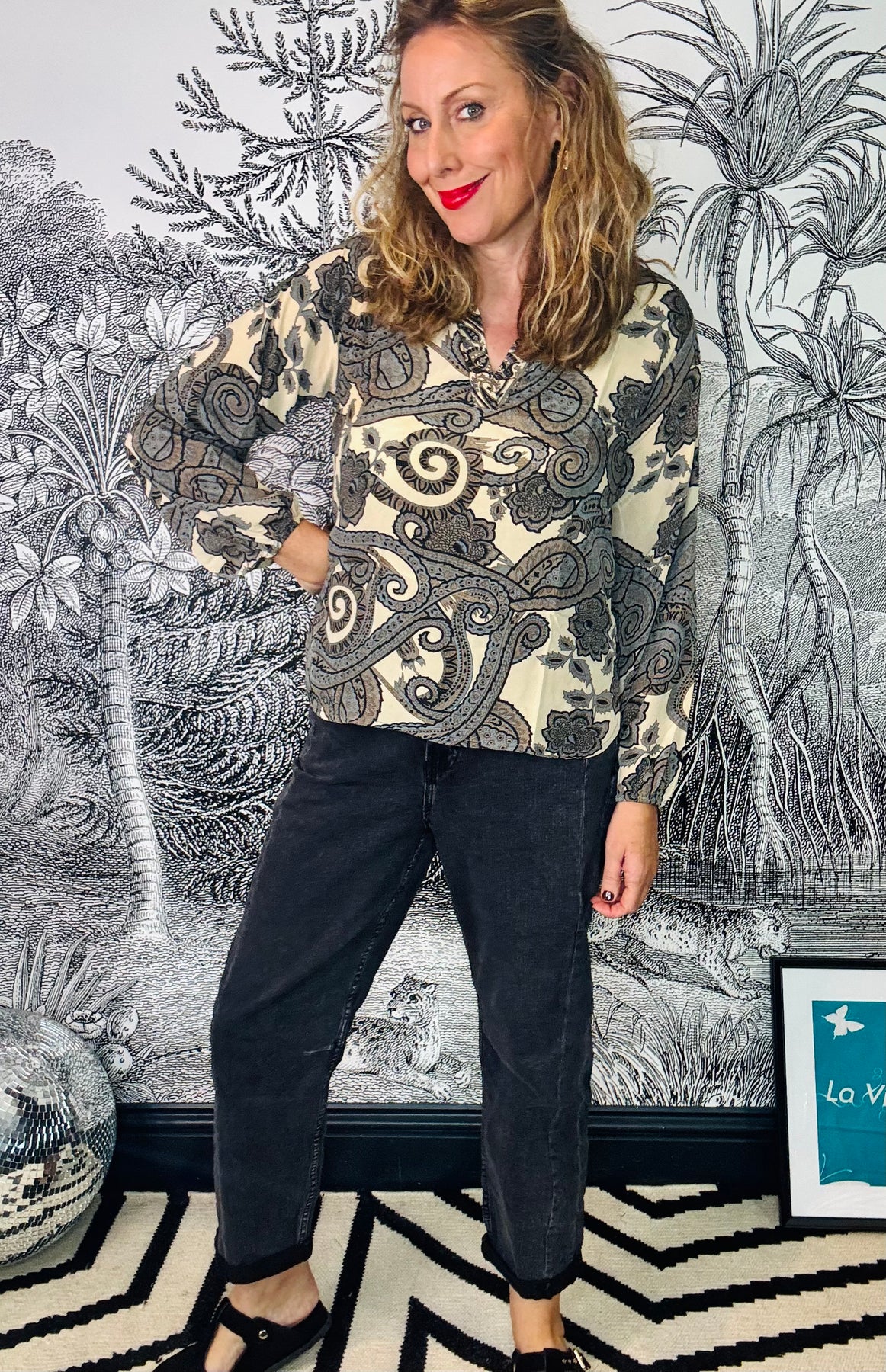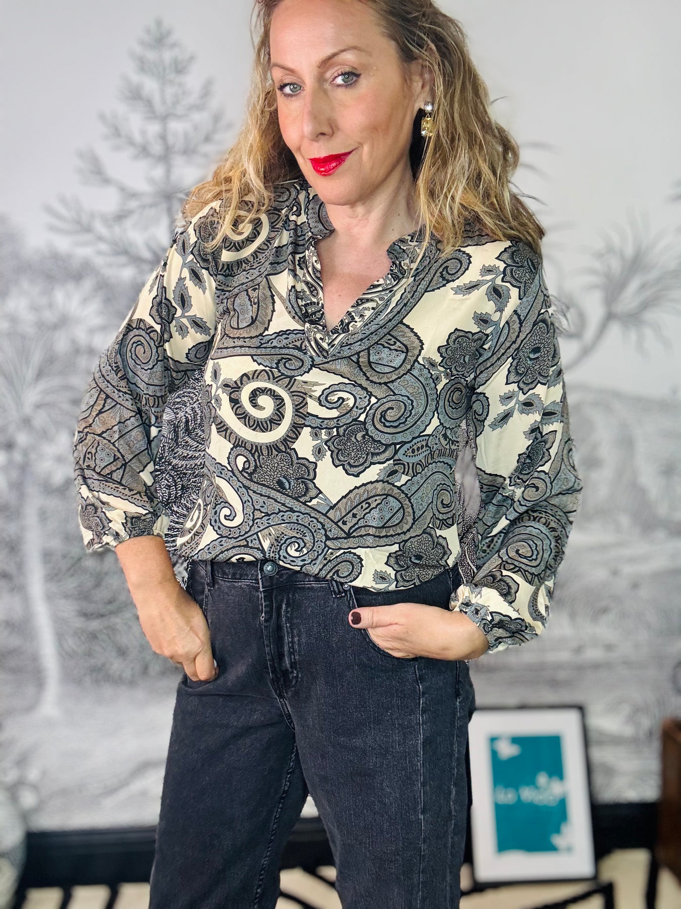 Luna Blouse in Grey Paisley