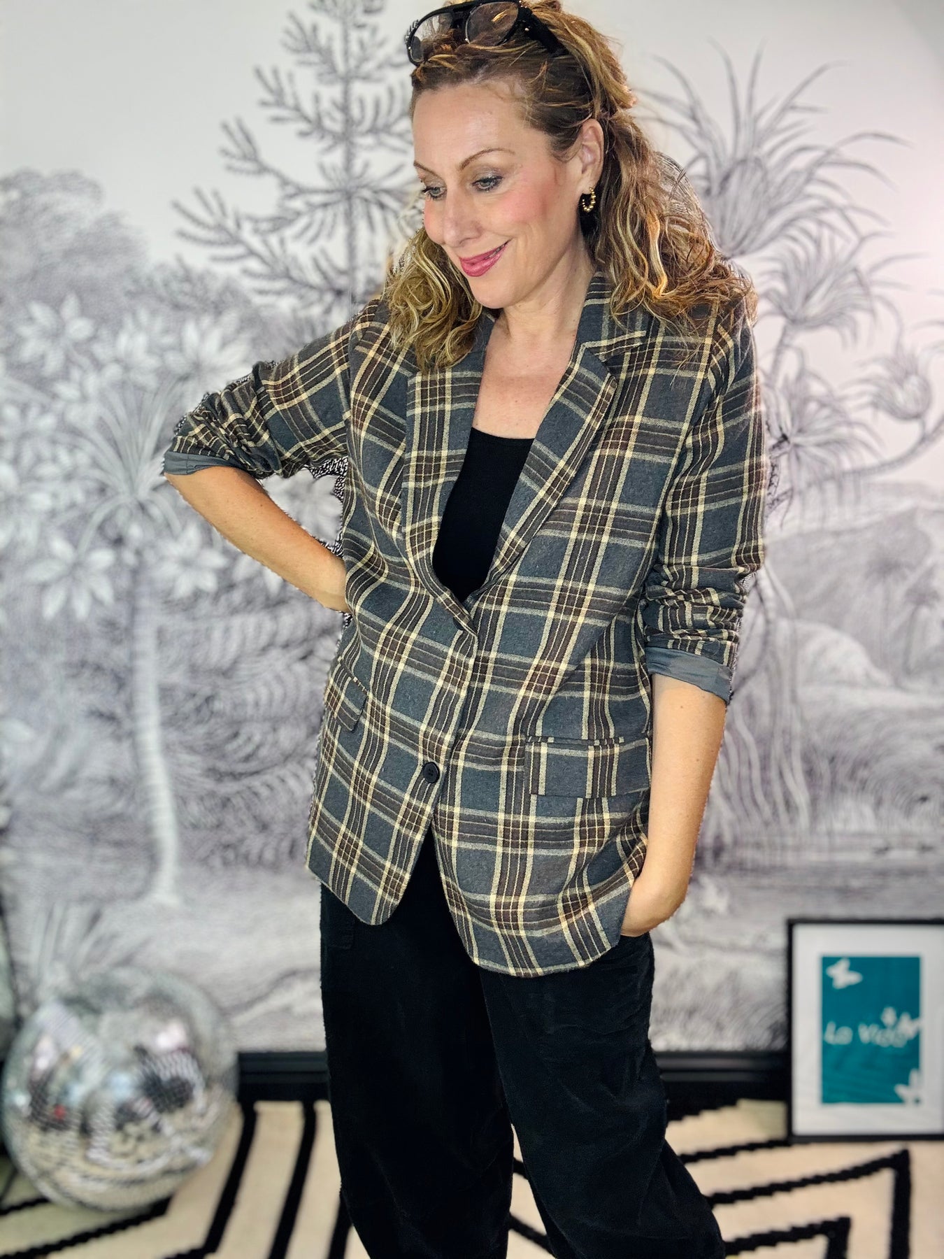 Elevate your wardrobe with the Nellie Plaid Brushed Blazer, a timeless piece that seamlessly transitions from office to evening. Crafted from soft brushed fabric, this sophisticated blazer features a classic plaid pattern that adds visual interest without compromising versatility. The tailored silhouette flatters the figure while maintaining an effortlessly polished appearance. Perfect for layering over dresses or pairing with tailored trousers, the Nellie delivers understated elegance for the modern professional. An investment piece that anchors any capsule collection with refined style and enduring appeal.