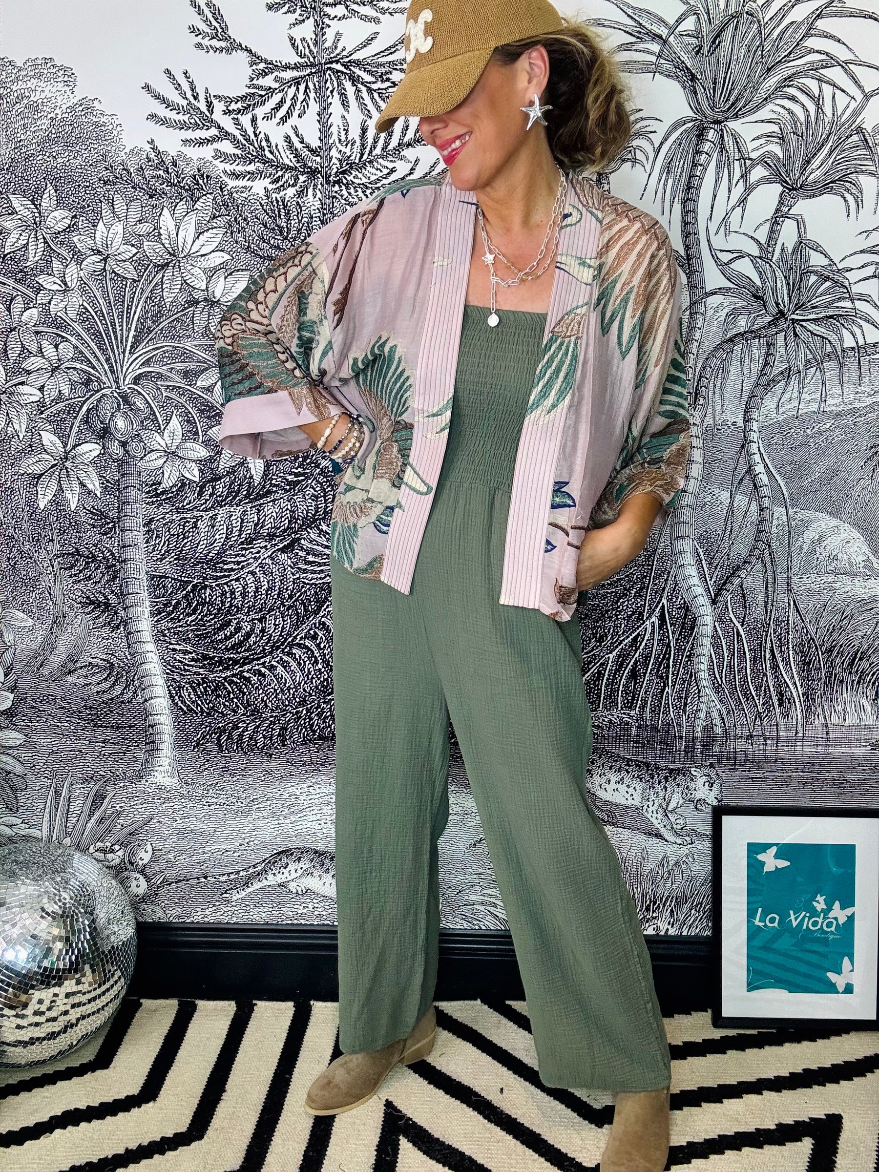 Our bestselling kimono jackets have loose ¾ length sleeves, an open front and a lightly embroidered lapel. Pair with a matching camisole and your favourite jeans in summer or layer over a polo neck during the cooler months.