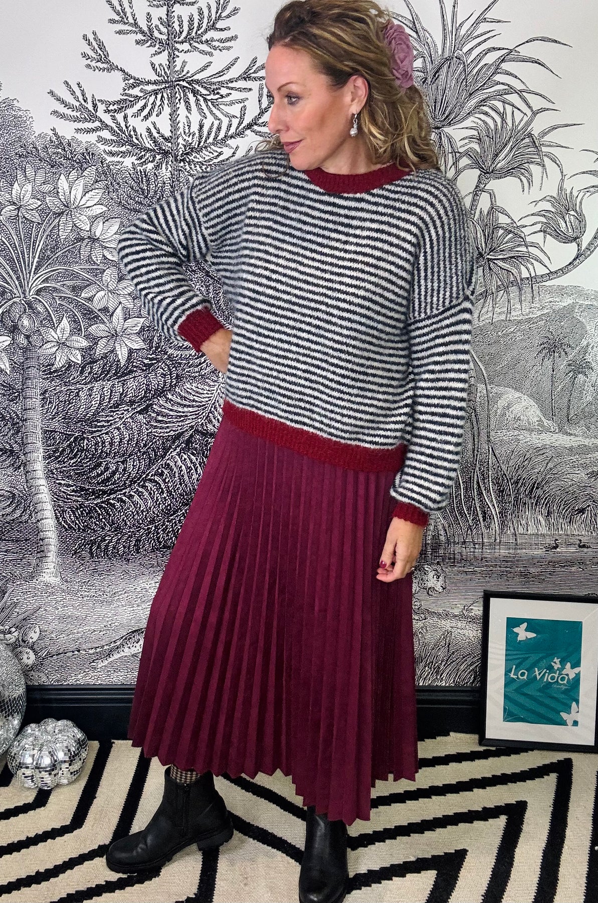 Elevate your wardrobe with the Lark Suedette Pleated Midi Skirt, a timeless piece that effortlessly combines elegance with contemporary style. Crafted from soft suedette fabric, it offers a luxurious texture and gentle drape that flatters every silhouette. The finely pleated design adds movement and sophistication, making it perfect for both daytime meetings and evening occasions. Its versatile midi length allows for seamless pairing with heels or boots, giving you multiple styling options for different looks. Embrace understated refinement with this skirt, designed to enhance your chic and polished appearance season after season.