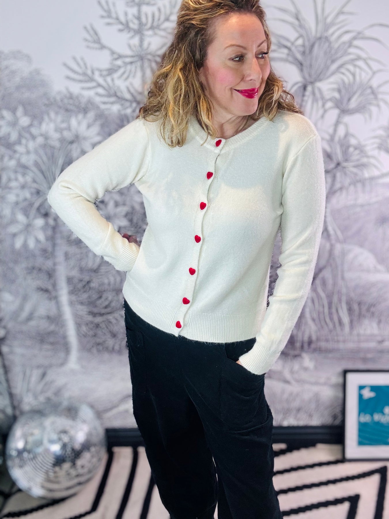 Introducing the Ramona Heart Button Cardigan, a timeless layering piece that effortlessly elevates any wardrobe. Crafted with meticulous attention to detail, this cardigan features delicate heart-shaped buttons that add a touch of romantic charm without compromising on sophistication. The relaxed fit ensures comfort throughout the day, while the refined silhouette works beautifully over dresses, blouses, or worn open as a statement layer. Perfect for transitional seasons, this versatile piece transitions seamlessly from casual daywear to polished evening looks. An investment in understated elegance that will become a cherished staple in your collection.
