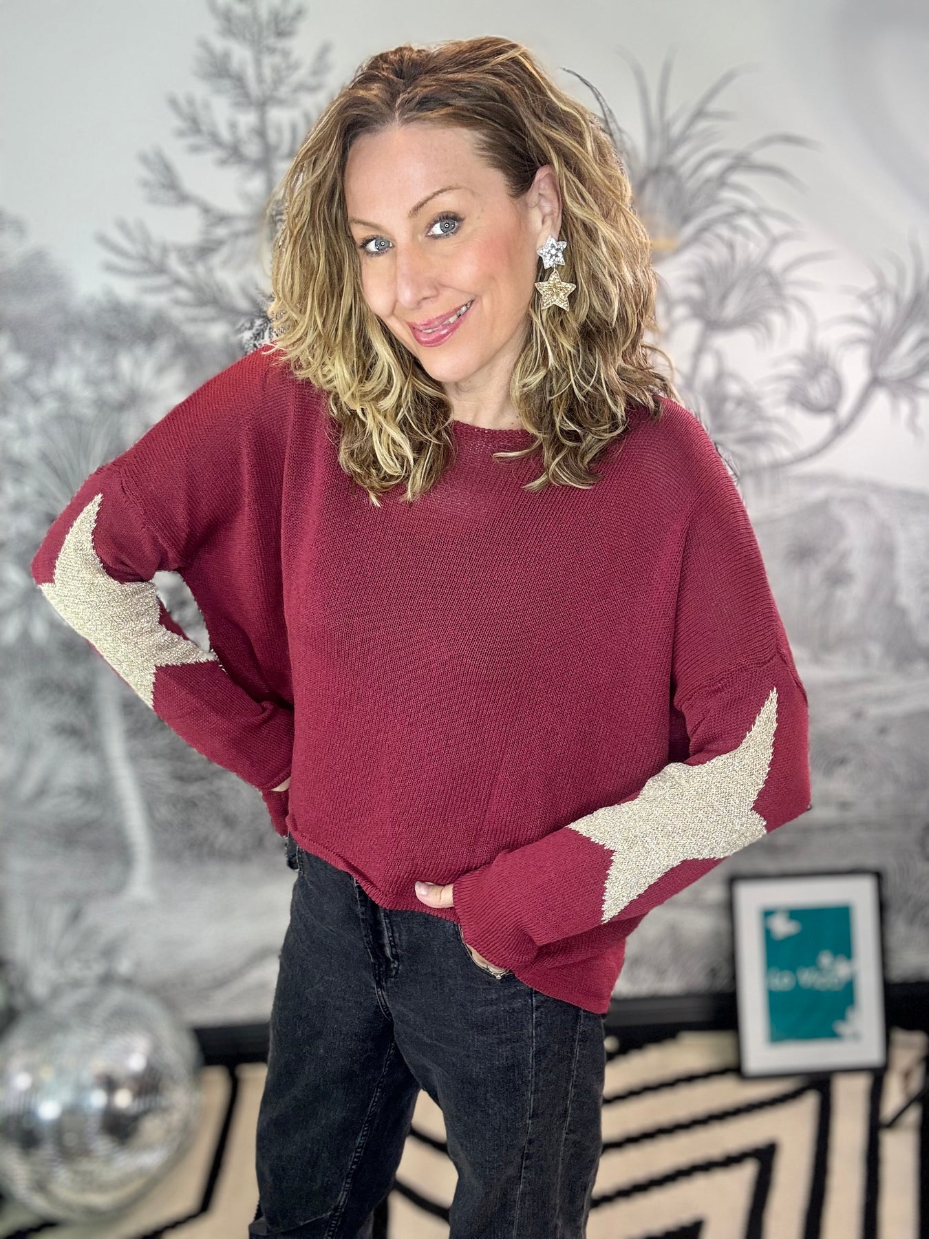Elevate your wardrobe with the Estrella Metallic Star Back Jumper, a refined piece that combines comfort with subtle glamour. Crafted with a delicate metallic finish, this jumper features an elegant star design on the back, adding a unique and sophisticated touch to your look. Perfect for layering or wearing on its own, it offers a flattering fit that enhances your silhouette while providing warmth. Ideal for both casual outings and stylish evenings, this jumper effortlessly blends classic charm with contemporary flair. Experience understated luxury with the Estrella Metallic Star Back Jumper.