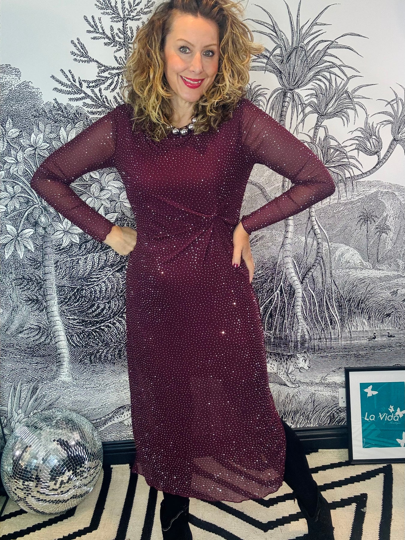 Elevate your evening wardrobe with the Alexis Sparkle Stone Twist Knot Dress, a refined blend of elegance and modern design. This dress features a shimmering stone-embellished fabric that catches the light beautifully, ensuring you stand out at any occasion. The twist knot detail at the waist flatters your silhouette while adding a touch of unique sophistication. Crafted to combine comfort with style, it drapes gracefully for a flattering fit. Perfect for formal events or upscale gatherings, this dress embodies timeless glamour with a contemporary edge.