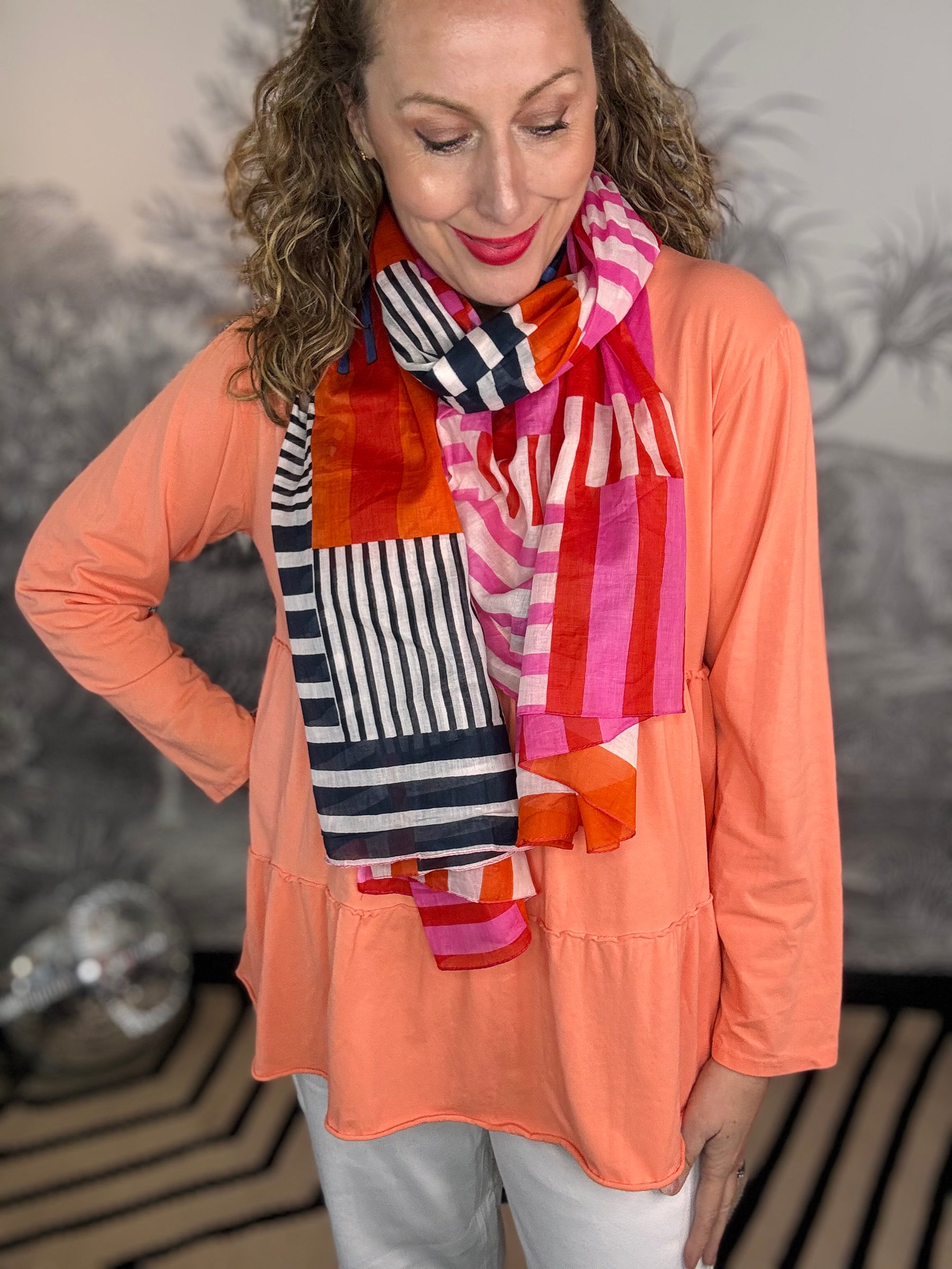 Block Stripe Lightweight Cotton Scarf in Pink Effortlessly versatile and beautifully crafted, this one-size cotton scarf is your go-to accessory for any occasion. Made from 100% natural cotton, it offers a soft, breathable feel perfect for casual drinks, beach holidays, festivals, or everyday wear. Whether you're gifting it for Mother's Day, Valentine's, or simply because, this scarf transitions seamlessly from brunch with friends to weekend adventures. Machine washable on a delicate cycle and made in India with sustainability at heart—crafted from natural fibres and packaged responsibly. A timeless piece that works as hard as you do.