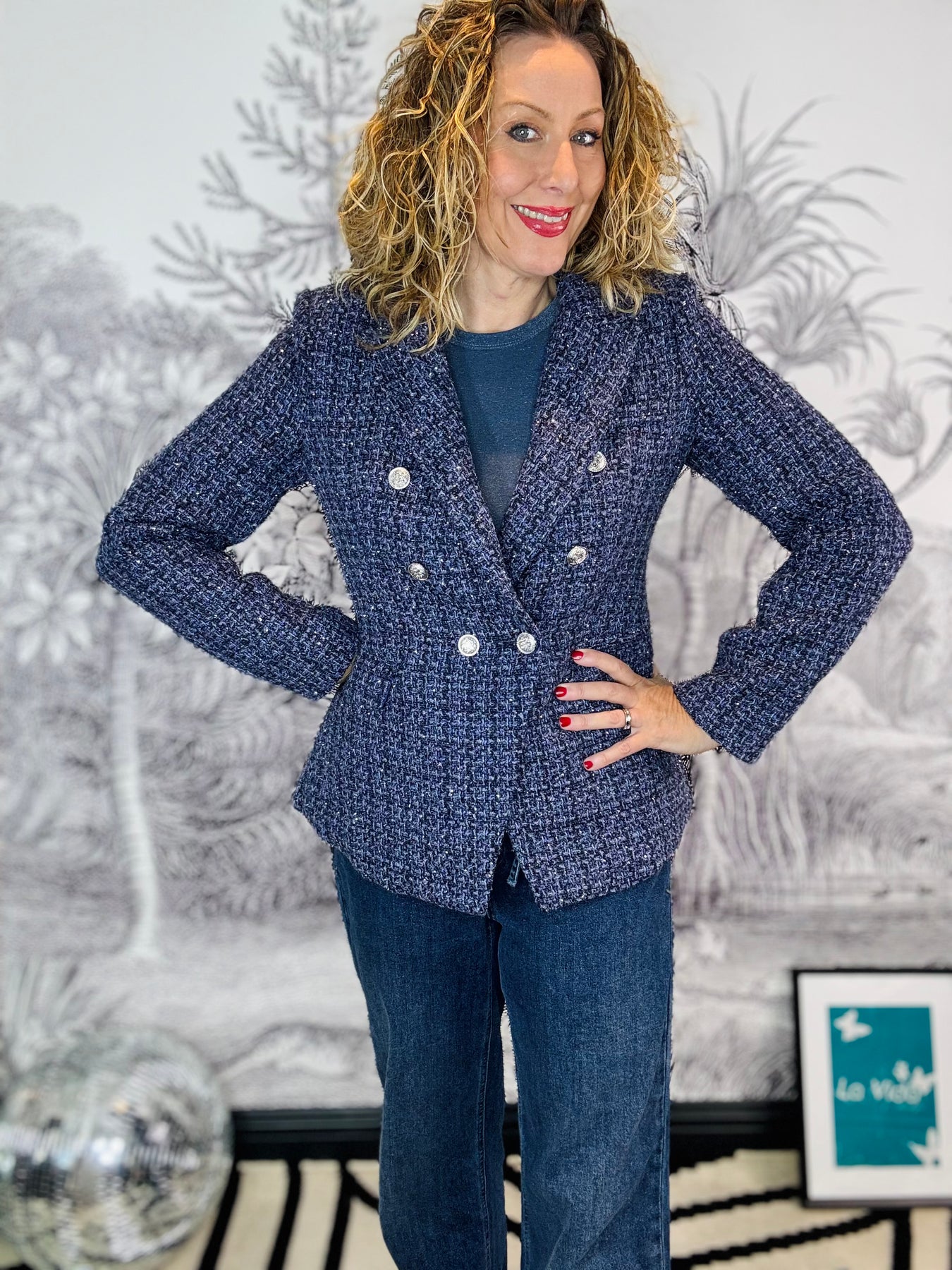 Elevate your wardrobe with the Delphine Sparkle Tweed Blazer, a timeless piece that seamlessly blends classic tailoring with contemporary glamour. Crafted from premium tweed fabric, this blazer features subtle sparkle detailing that catches the light beautifully, making it perfect for both professional settings and evening occasions. The structured silhouette flatters the figure whilst maintaining an effortlessly polished aesthetic. Whether layered over a crisp white shirt for the office or paired with evening wear for a special event, this versatile blazer delivers understated sophistication. A wardrobe essential that transcends seasons and trends.