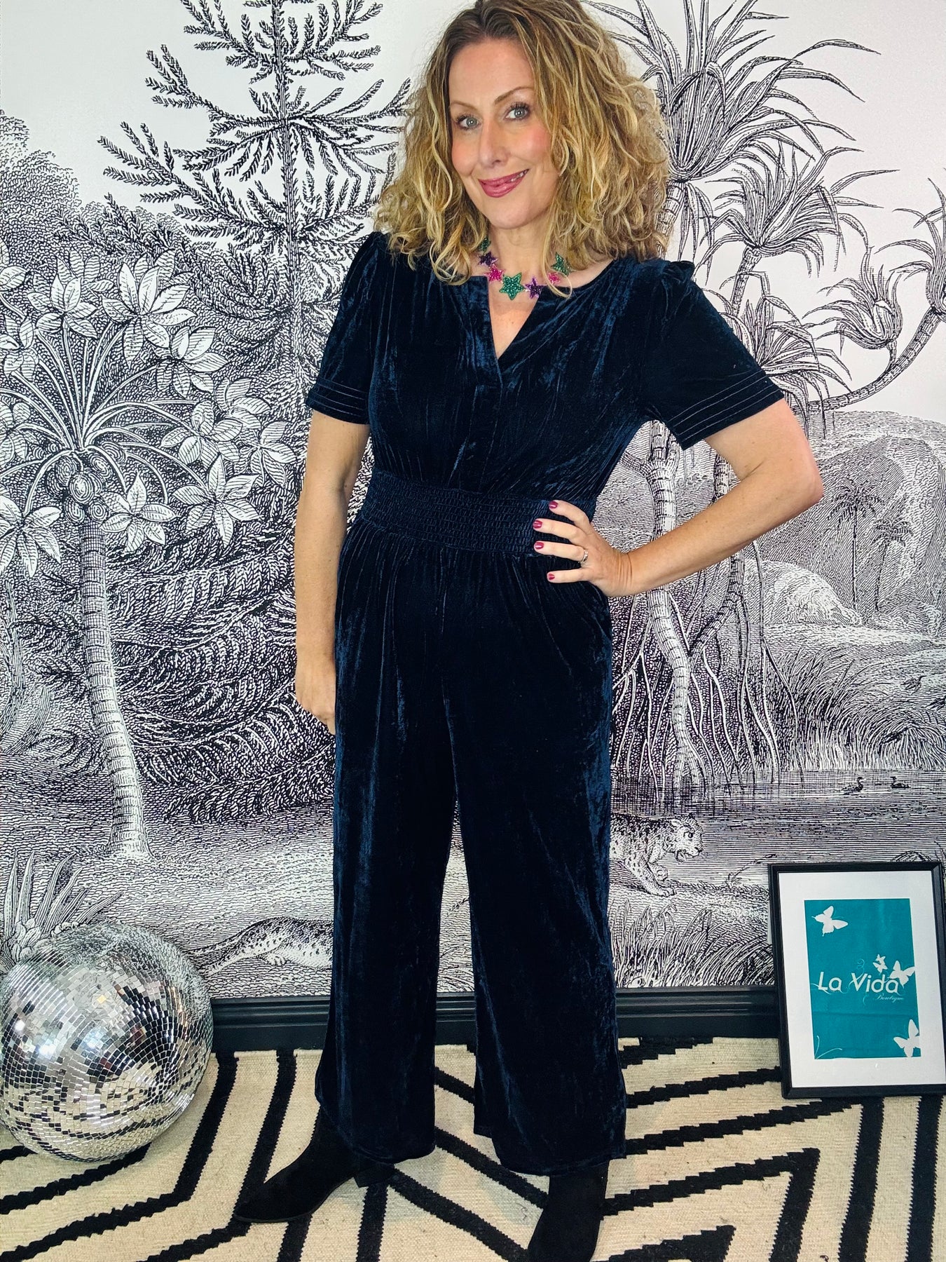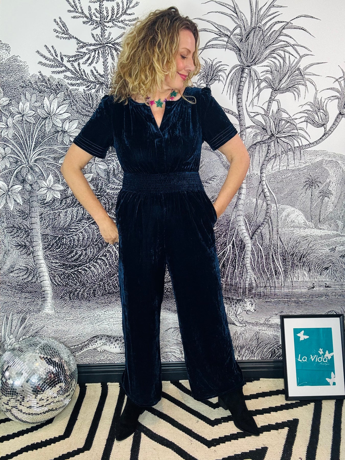 Elevate your wardrobe with the Lydia Short Sleeve Velvet Jumpsuit, designed to blend luxury and comfort effortlessly. Crafted from sumptuous velvet, this jumpsuit offers a soft, rich texture that drapes beautifully on the body. Its tailored short sleeves and sleek silhouette provide a refined yet modern look, perfect for evening occasions or stylish daytime events. The Lydia jumpsuit promises both sophistication and ease, making it a versatile piece that enhances your elegance with minimal effort. Experience timeless style and plush comfort all in one.