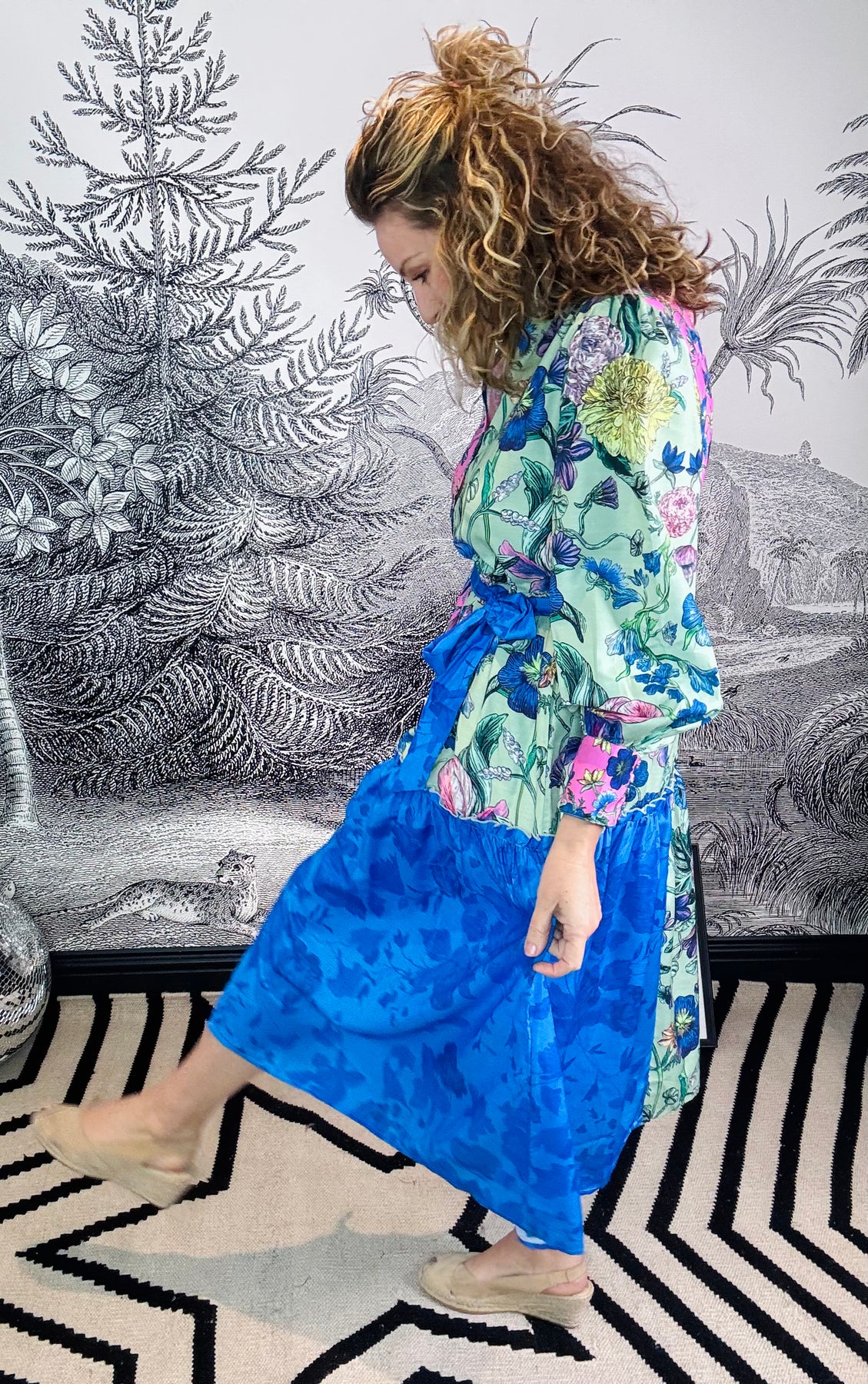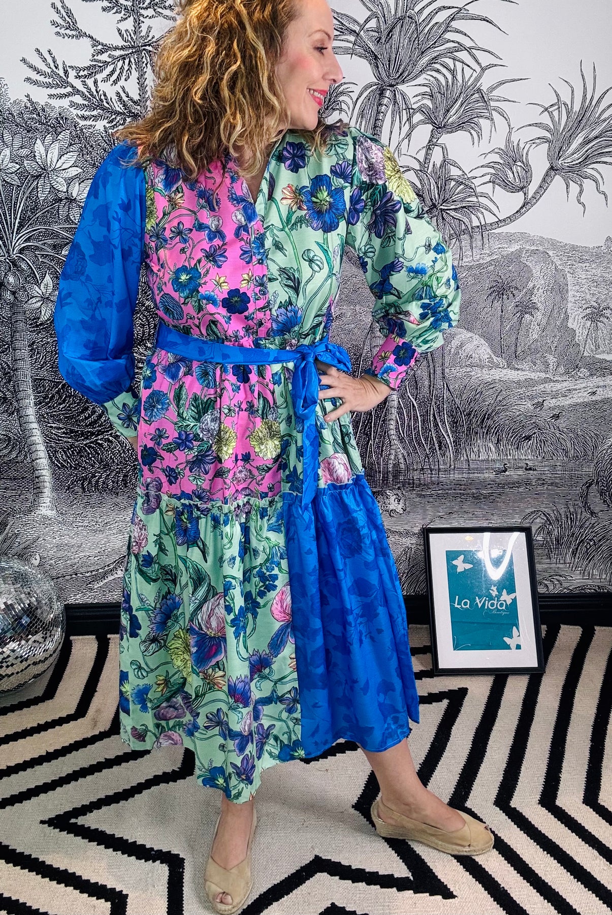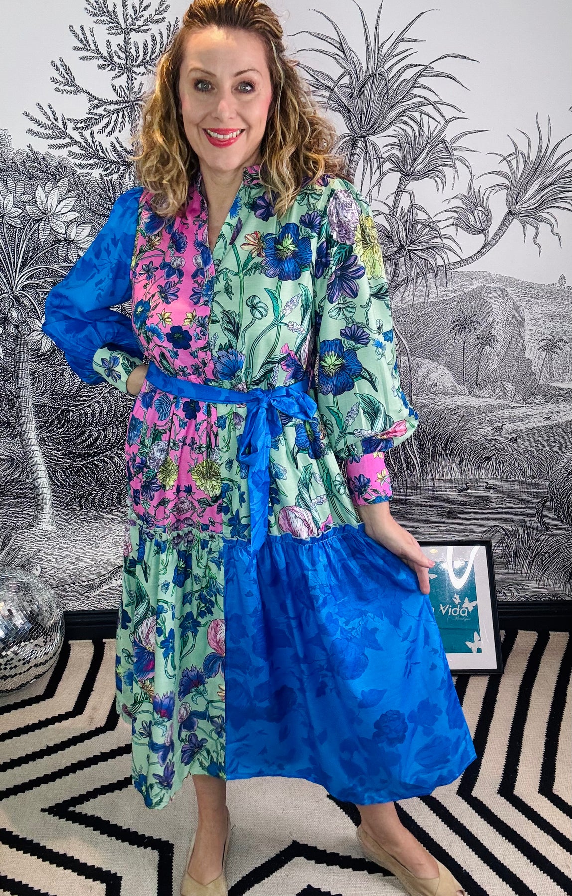 Meet your new spring essential. The Maxine brings vibrant mixed-print energy to a flattering button-front design, complete with an adjustable tie waist that celebrates your shape. Crafted from 100% recycled polyester, this 132cm dress transitions effortlessly from daytime casual to evening chic. Style with woven flats and a basket bag for relaxed days, or elevate with block heels and layered jewellery for nights out. Light, comfortable, and bursting with personality—this is the dress you'll reach for again and again.
