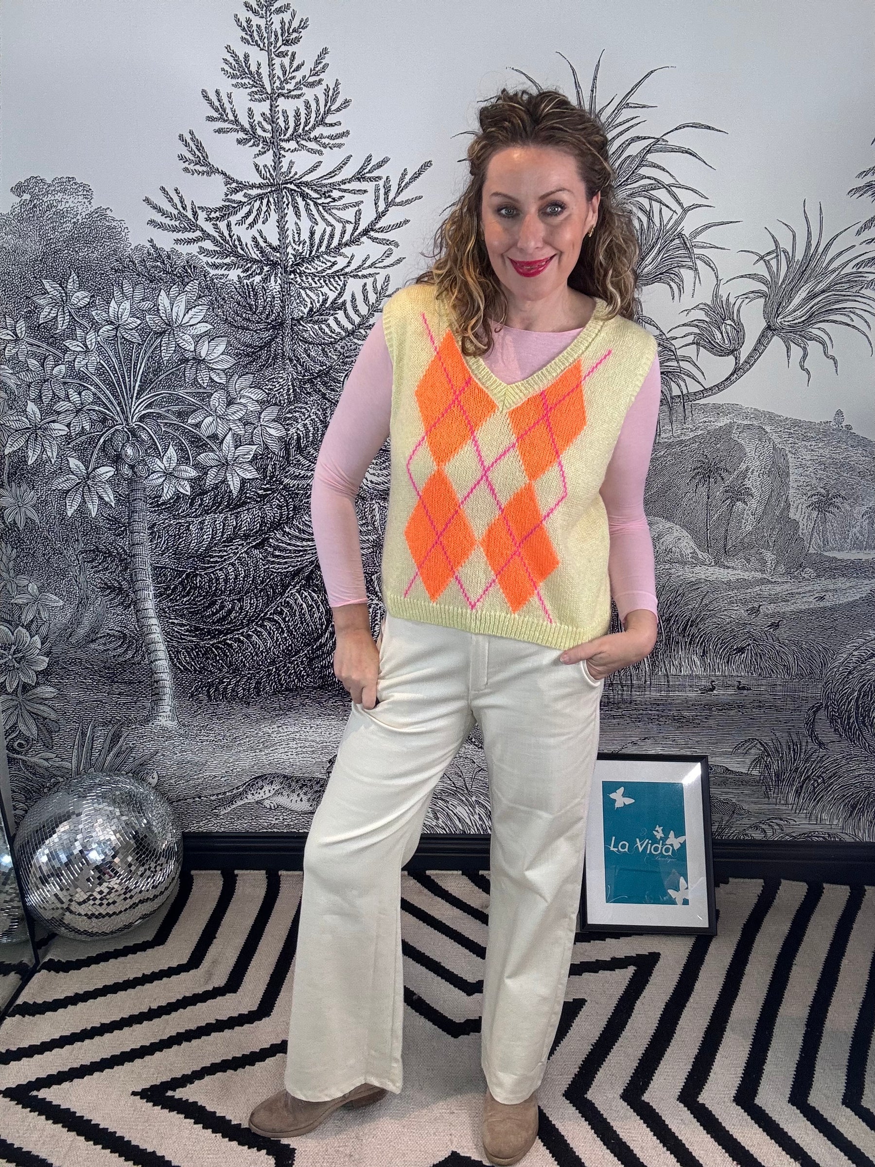 Meet the Emily V Neck Argyle Pattern Mohair Tank Top—a stunning Italian-crafted essential that's about to become your go-to layering hero. The luxurious mohair fabric drapes beautifully, while the timeless argyle pattern and flattering V neckline add understated sophistication. Wear it solo for effortless elegance or layer it over a crisp white tee as you transition into spring. Versatile, tactile, and undeniably chic, this tank top is the kind of piece that works harder than it looks.
