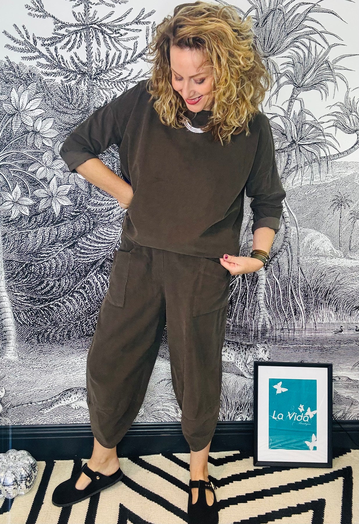 The Geneva Baby Corduroy co-ord set combines timeless style with modern comfort, featuring a soft corduroy top paired with elasticated waist barrel-leg trousers. This one-size ensemble offers effortless elegance and a flattering fit, making it a versatile essential for the season. Ideal for any occasion, it brings together sophistication and ease in a beautifully coordinated look.